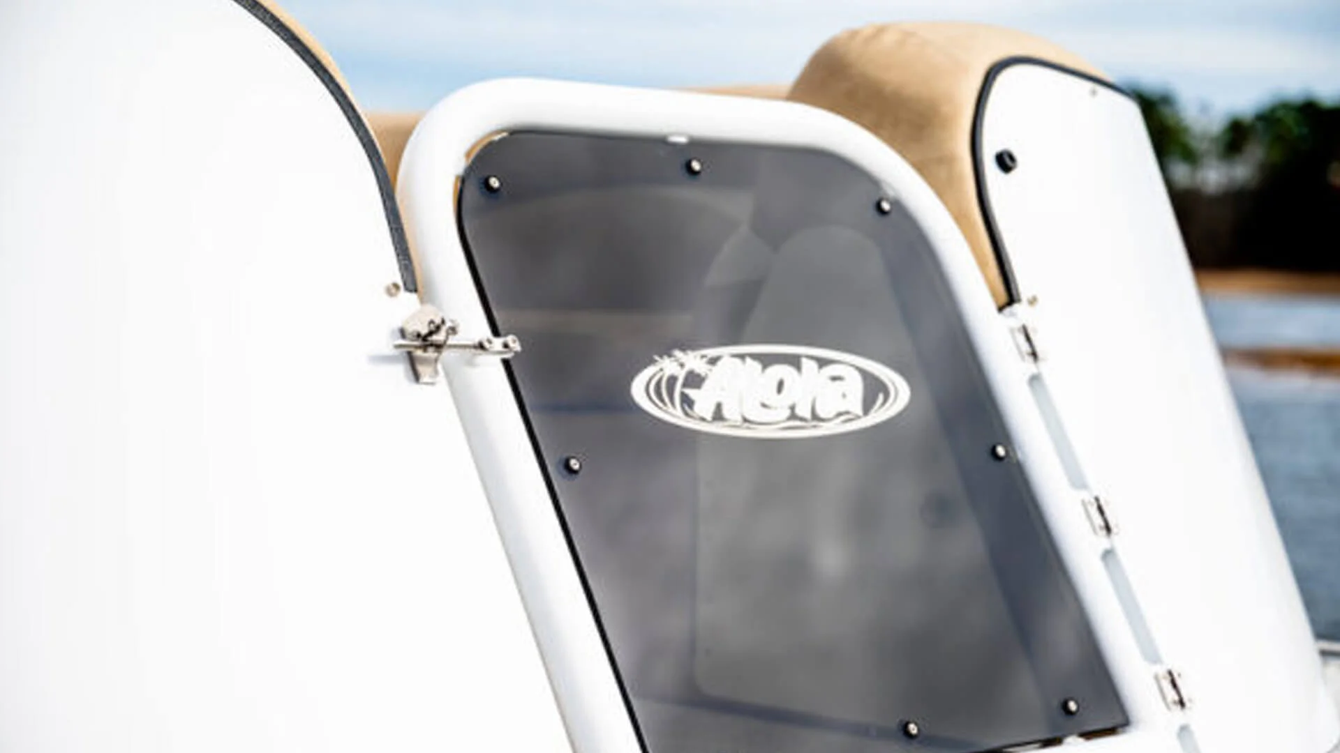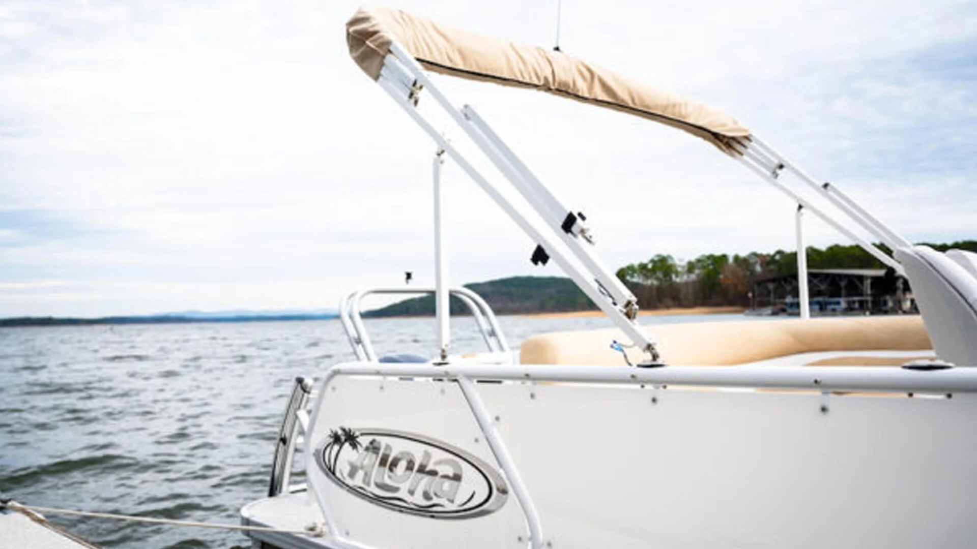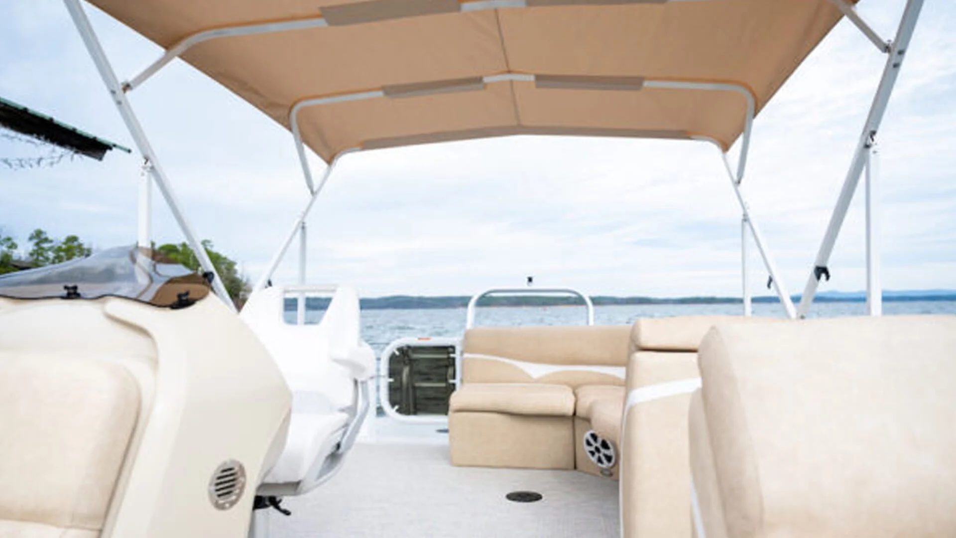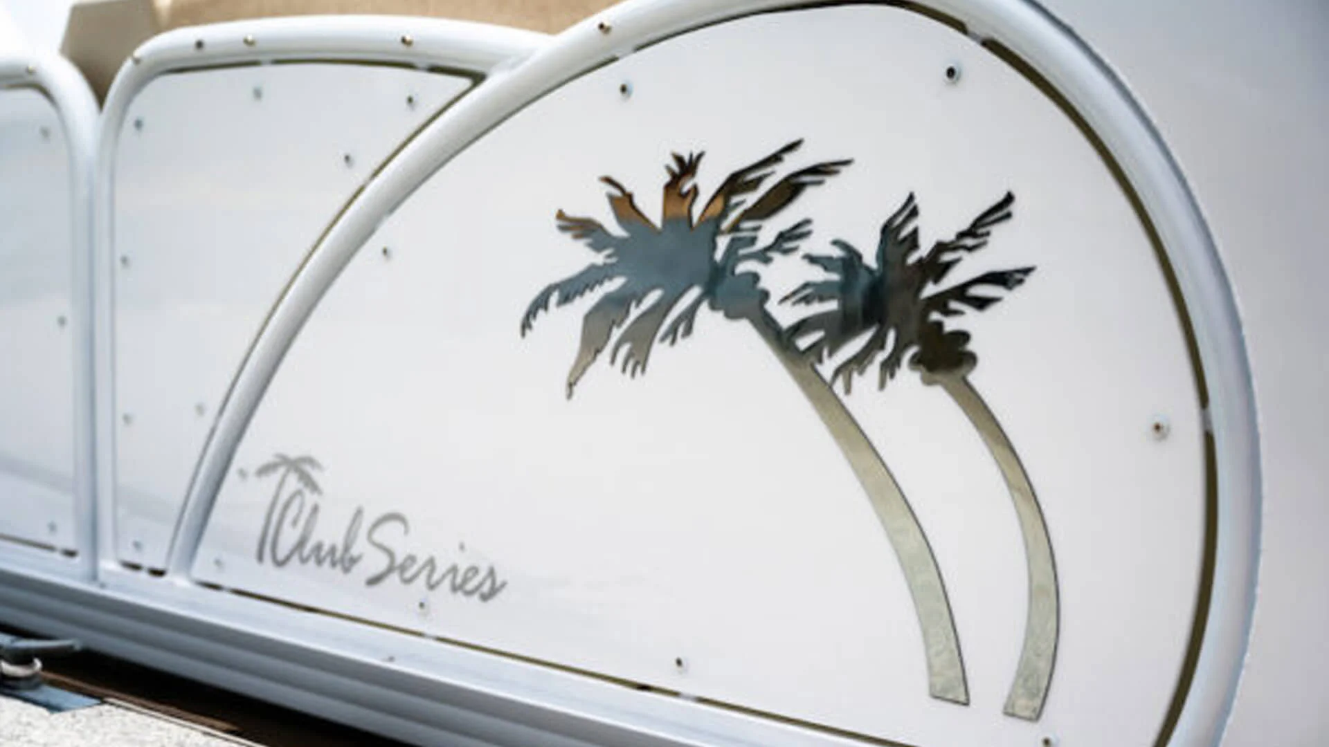 - Signature Railing & Shade: 2-inch round sweptback railing & Sunbrella Bimini Top.