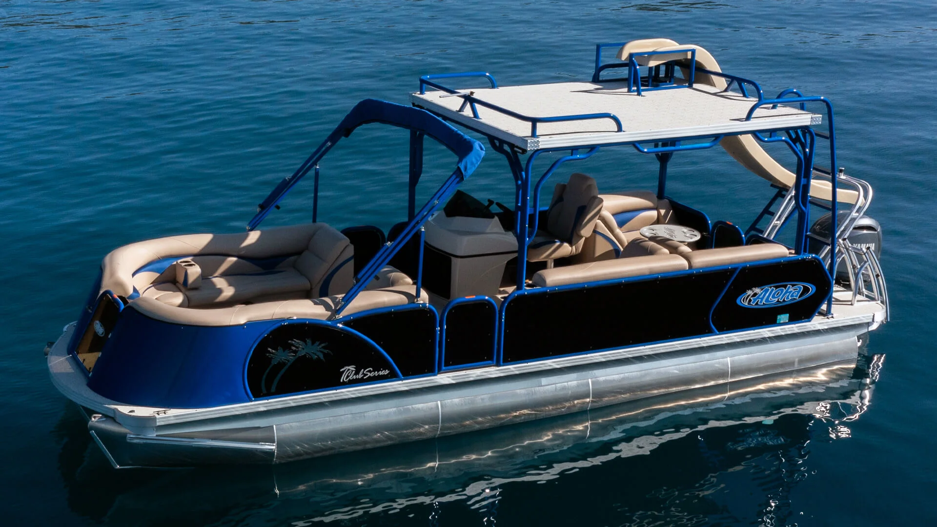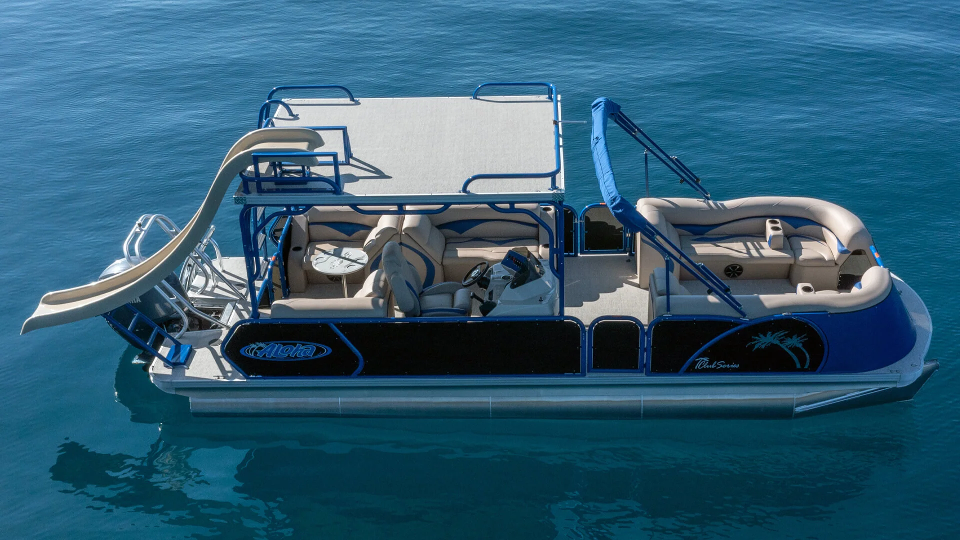 The 2026 Aloha 260 Club Sundeck Pontoon with Slide is a high-performance tritoon designed for families who want to maximize their time on the water. Built with Aloha Pontoons’ signature “overbuilt” philosophy, this 26-foot vessel features three heavy-duty .100 gauge pontoons with performance lifting strakes and an integrated transom for exceptional stability and speed. The highlight is the upper sundeck, which provides a secluded sunbathing area equipped with lounge furniture, integrated speakers, and a built-in slide for an instant waterpark experience. Below, the innovative 2-inch round railing system and swept-back compound curve bow offer a sleek, modern aesthetic and ample ventilated storage for all your gear. Whether you’re entertaining at the refreshment center or navigating with the Humminbird Helix GPS, this boat combines luxury and durability for the ultimate day of cruising or watersports.