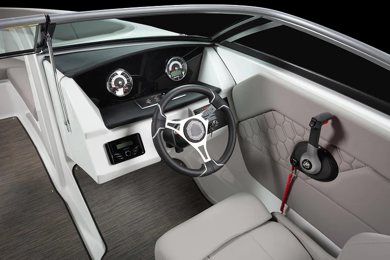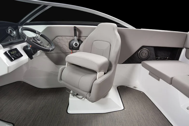 - Comfortable captain’s helm seat with bolster