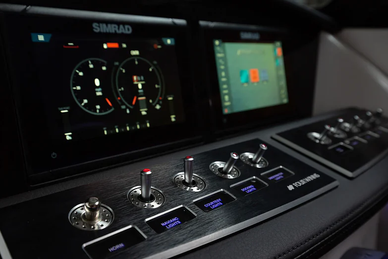 - Deluxe helm with LED‑lit switches, tilt steering, and touchscreen instrumentation