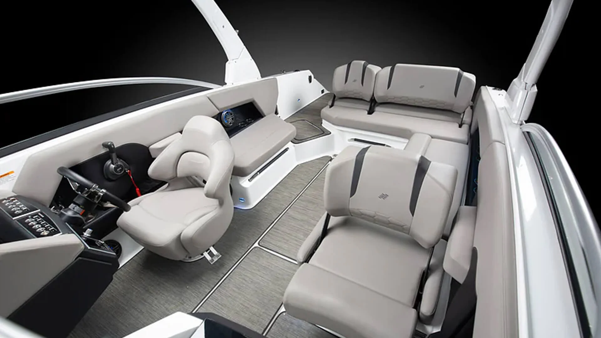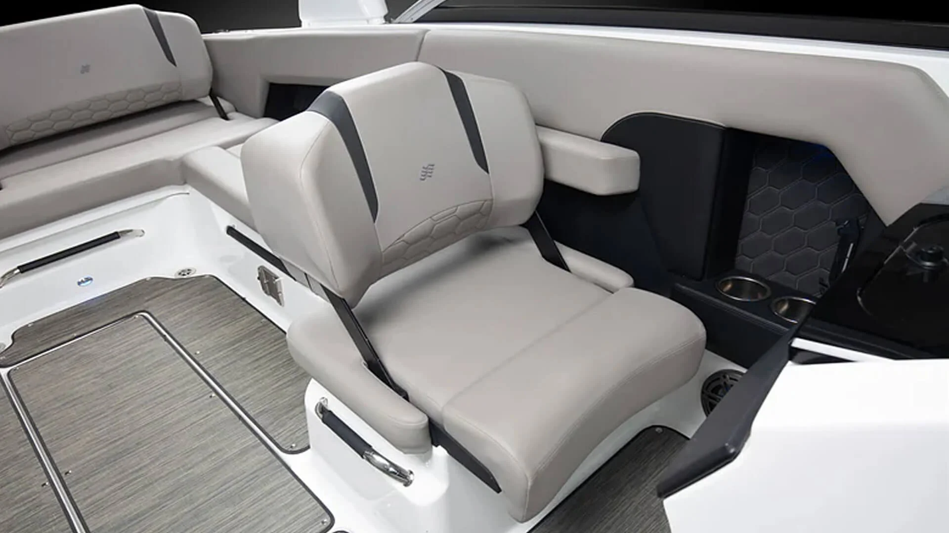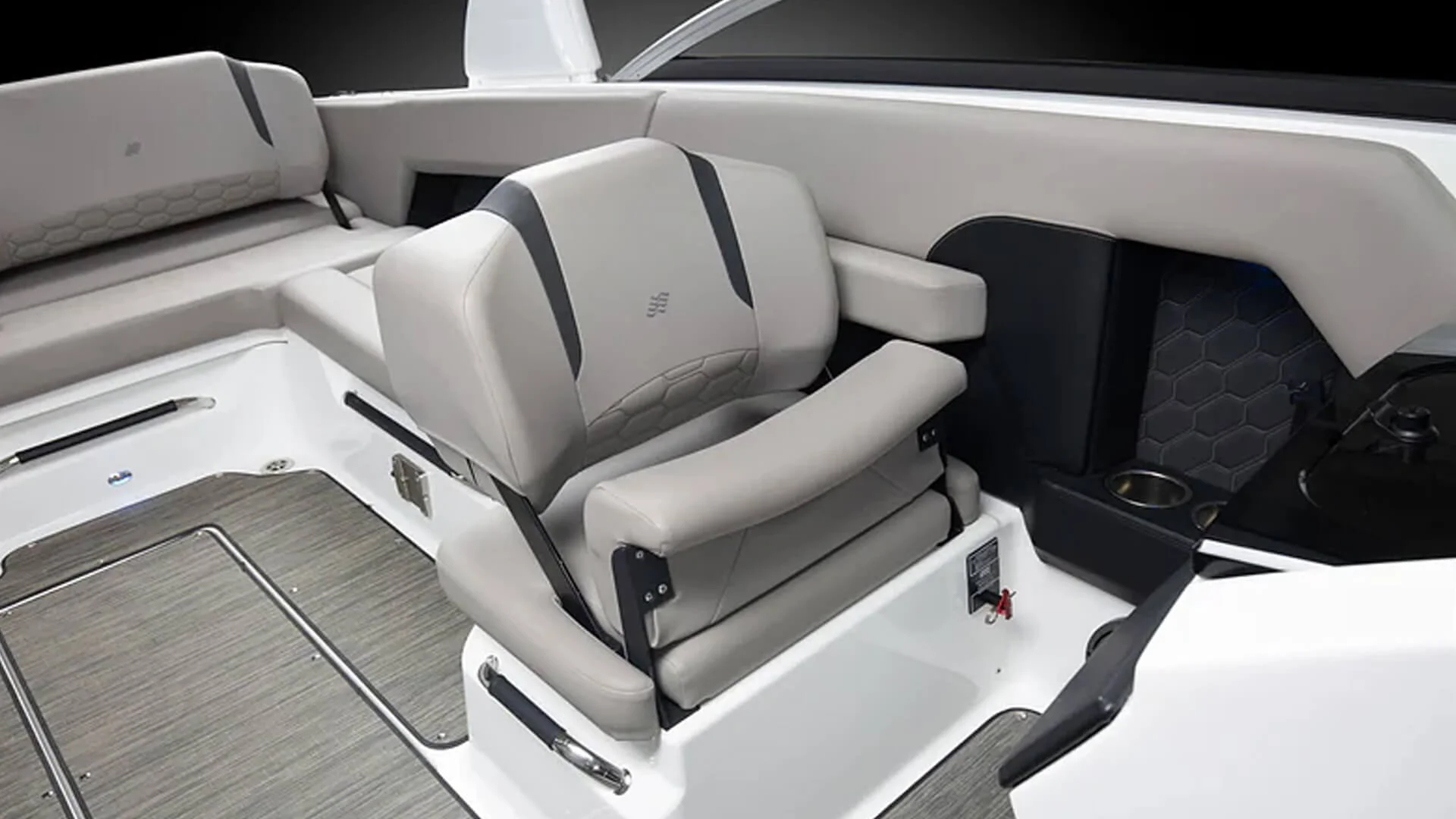 • Seating: Spacious U-shaped cockpit seating with ComfortRide flip-up bolster helm and companion seats