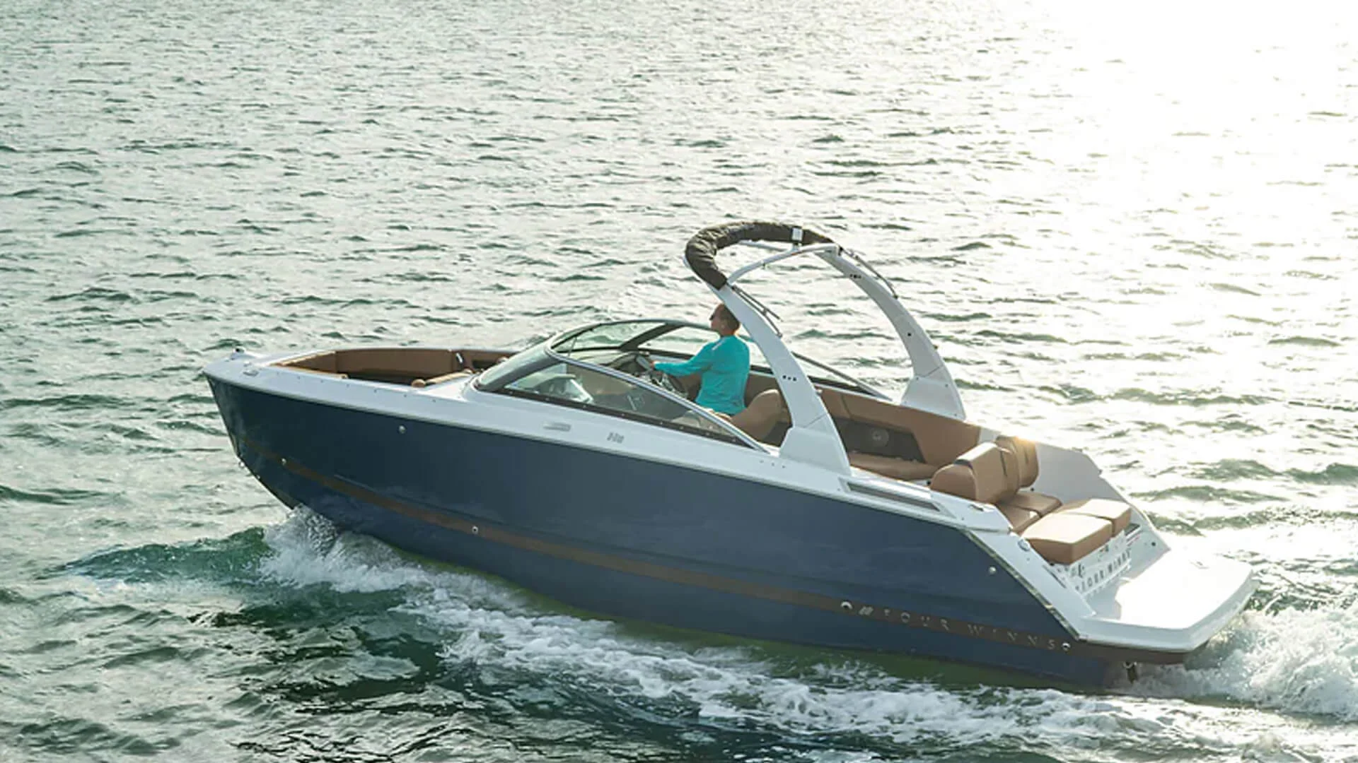 • Standard Trailer: Four Winns® custom-matched tandem axle trailer with brakes, jack-stand and submersible LED lighting