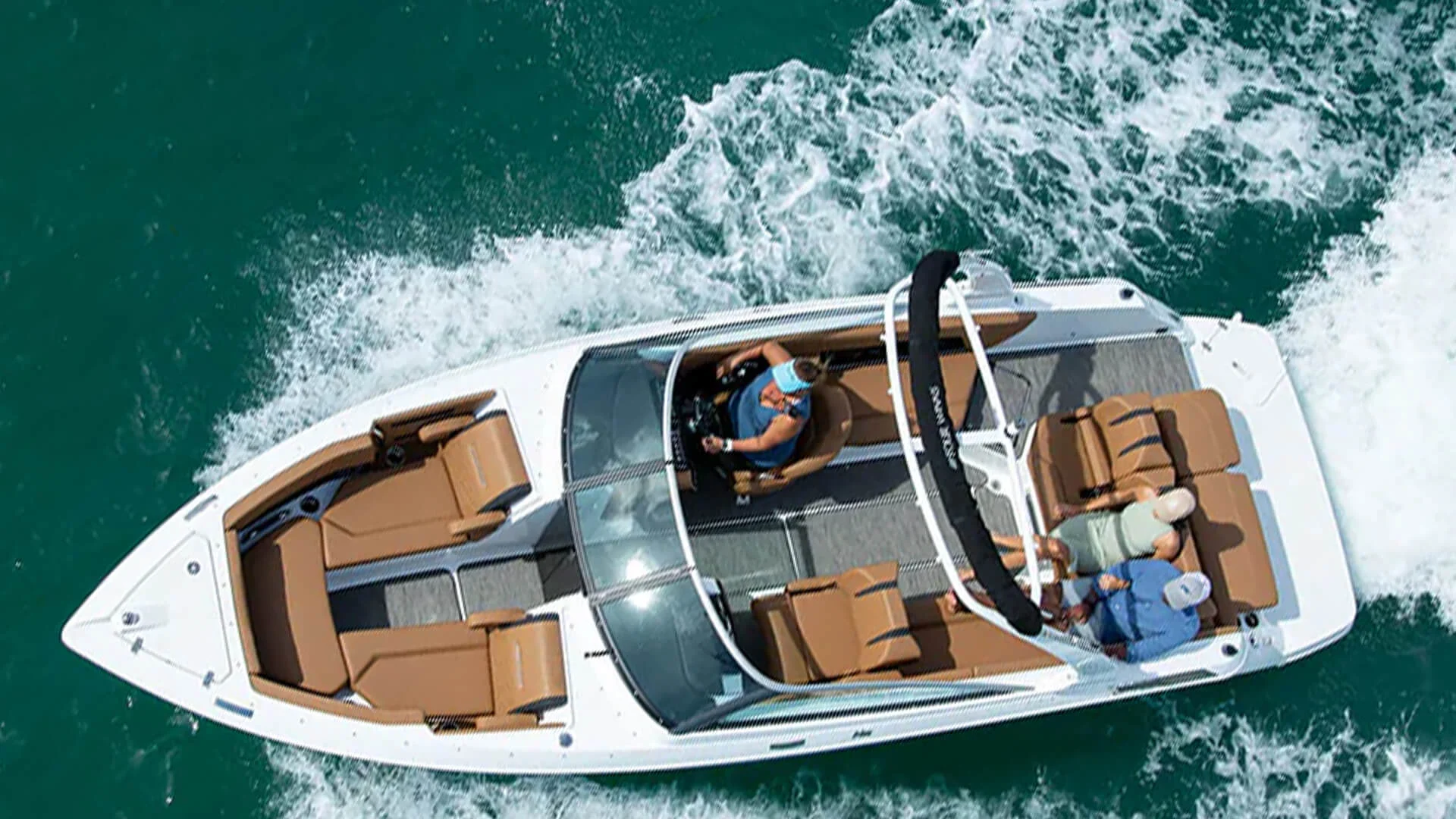 • Windshield: Walk-through curved glass windshield with premium aluminum header