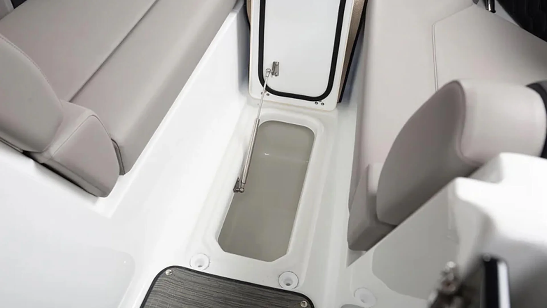 • Ski Locker: In-floor ski/wakeboard locker with gas-assisted hinged lid and mat